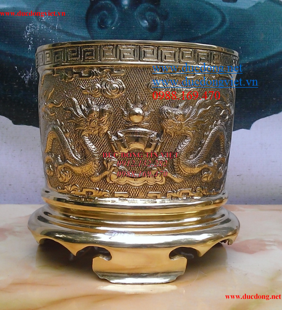 Bát hương được đúc bằng đồng vàng nguyên chất.